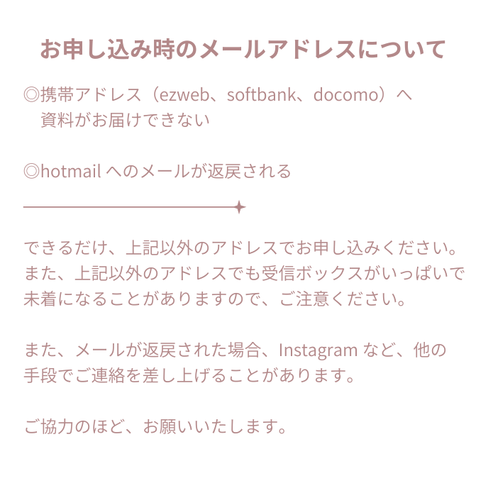 ・メールをお送りするまで、数日いただきます。ご了承ください